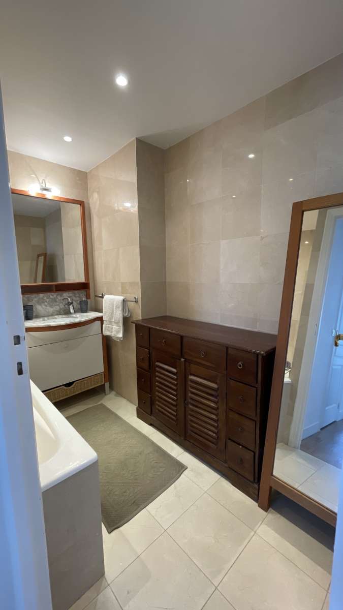 3 chambres, double séjour, cuisine séparée et aménagée, salle de bain en marbre et WC séparés. Cave au sous-sol